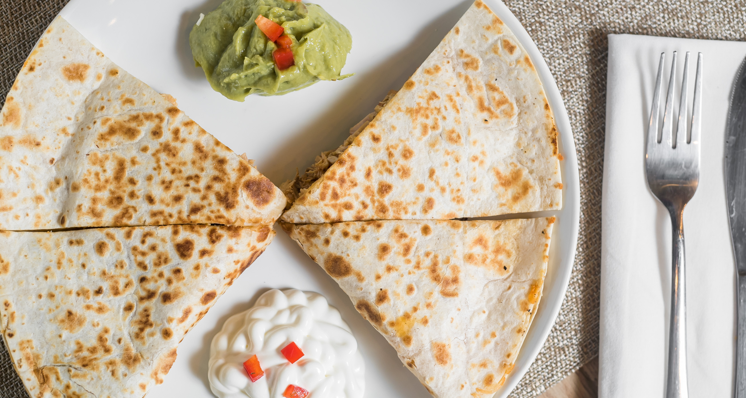 6 inch flour tortilla, choice of protein, pico de gallo, shredded cheddar & monterey jack cheese. Served with guacamole and sour cream